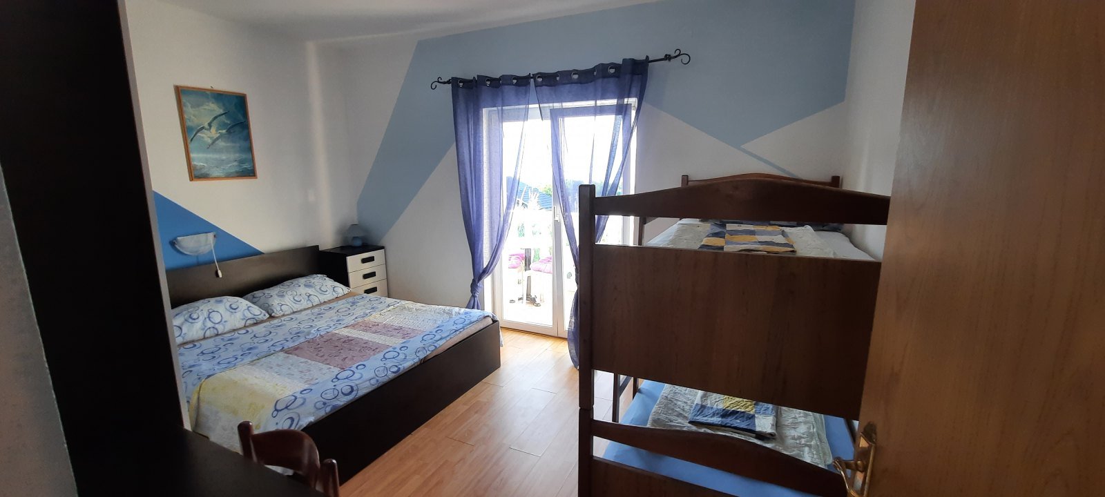 -2 spavaće sobe (veća soba sa bračnim krevetom i krevetom na kat za do 4 osobe, manja soba je sa bračnim krevetom za 2 osobe) , svaka soba ima balkon sa pogledom na more